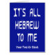 Text reading "IT'S All HEBREW TO ME" in a faux Hebrew font. A parody of the saying "It's all Greek to me" used when something is incomprehensible.