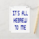 Text reading "IT'S All HEBREW TO ME" in a faux Hebrew font. A parody of the saying "It's all Greek to me" used when something is incomprehensible.