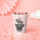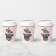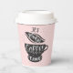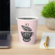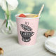 This hot beverage cup features whimsical hand lettering that says "It's always coffee time" on a pink background. The lettering features decorative swashes and ornamental swirls.