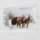 It's Christmas! Features two beautiful horses pulling a sleigh full of Christmas cheer while a cute little white dog with a Santa hat plays in the snow. This original art by Shanina Conway and is available on Christmas cards, Post cards, Art prints and posters you can add your own text and special message, Christmas gift ideas as well as home decorating items for the Holiday season.