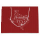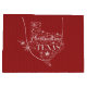 Simple holiday gift bag with "It's Christmastime in TEXAS" on a diamond textured red background, and outlined with snowflakes, Texas stars and dots.