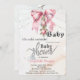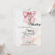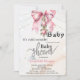 Cute baby shower invitation features a watercolor pink bow, Christmas balls, and string lights. These baby shower invitations are easily customised for your event by simply adding your details.
