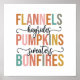 This colourful and fun fall design features a list of autumn favourites, including "Flannels," "Hayrides," "Pumpkins," "Sweaters," and "Bonfires." The text is presented in a bold, uppercase font with each word filled in with a different warm, earthy hue—ranging from soft pinks and oranges to muted greens and blues—perfectly capturing the cosy and vibrant spirit of the season. The words "hayrides" and "sweaters" are written in a flowing script, adding a touch of elegance and creating a nice contrast with the bold block letters. Decorative flourishes frame the script text, adding to the overall charm and appeal. This design is perfect for fall.