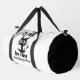 This white duffle bag features a humourous design of a distressed, wide-eyed black cat with blue eyes, and the text "It's Fine," "I'm Fine," and "Everything Is Fine" in a messy, scrawled font. This relatable design is perfect for those who maintain a positive façade despite chaos. Edit colour of the bag caps and body in the Design tool to your favored colours..
