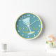 "It's Gin o'Clock Somewhere" is written in vintage 1930's lettering, on a wall clock with a smoky blue face and easy to see white numbers, also in a 1930's inspired font, under a drawing of a cocktail glass with a gin martini with two olives. It's ideal for a kitchen or bar area.