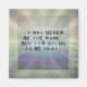 'It may never be the same, but it's going to be okay' inspirational quote against a pretty, serene lavender, grey, and light yellow starburst background.