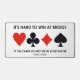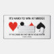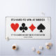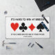 If you play the game of bridge or duplicate bridge, then you know the following bridge truism: "It's Hard To Win At Bridge If The Cards Do Not Lie In Your Favour". Make others do a double-take at the bridge table with this desk mat featuring this common bridge saying at the bridge table! Design includes the four card suits.