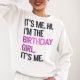 Celebrate your special day in style with this eye-catching birthday t-shirt! Perfect for the birthday girl who loves to shine, this tee features a playful, sparkly text design declaring "It's Me. Hi. I'm The Birthday Girl. It's Me." Made with high-quality, comfortable fabric that will keep you feeling fabulous all day long. Customise with your age or name for a truly personal touch. Whether you're having a big party or a small gathering, this shirt is sure to make you feel like the star of the show. Available in various sizes and colours to suit your preference. Make your birthday memorable with this fun and festive t-shirt!