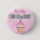 Pink Cupcake Its my Birthday, time to party cool graffiti text button.