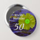 It's my Birthday Purple/ Green Flower Birthday 10 cm Round Badge....Age and Birthday Greeting can be personalised