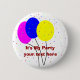 Colourful Balloon Party Button, let everyone know just whose party it is! Put in your own Name or personal text on button. Available Matching Balloon design invitations