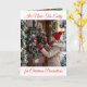Funny early Christmas card. It's never too early for Christmas! Christmas humour greeting card to send to your holiday loving friend or family member. Graphics of a woman hanging up a Christmas wreath on her front door.