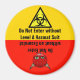 A red and yellow magnet with one half depicting a biohazard sign with "Do Not Enter without Level A Hazmat Suit" and the other half with a grinning devil and "Do Not Enter without an Exorcist." Perfect for that place that never gets clean, but has various levels of dirty.