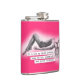 Well made flask, a little better than I had expected. Flask came in clear plastic box which gave it a nice presentation when I took it out of the zazzle packaging. Image is not printed on flask but on sticker. Don't know how this will hold up I haven't used it yet. This would make a Great gift! I plan to purchase more for friends! Cheers. I thought a little brighter than computer. Very crisp, writing wasn't