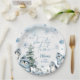 Blue winter wonderland birthday paper plates with Penguin, pine trees and snowflakes watercolor.