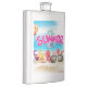 The product is a good size and came exactly as it was pictured. The lid is not attached to the flask, which could be dangerous on drunken nights... The print came out surprisingly well and looks very sharp. Would definitely recommend.