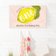 This cute " it's sweet to be one " girl's 1st birthday welcome banner / sign features a blush pink background with a big yellow lemon and small polka dot patterns. change the background colour and personalise it for your needs. You can find matching products at my store.