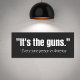 "It's the guns." - says every sane person in America. Gun reform / anti-gun violence poster in white bold font.