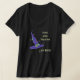 A fun Halloween T-shirt with a floating purple and teal blue enchanted witch hat that says "It's that Witchy Time Of Year, Let's Party" and a witchy laugh on the back. All the text is editable.