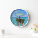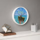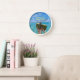 This clock is decorated with a photo of two half pineapples full of BahamaMama being held up against a blue Bahamian sea and sky. The words read: It's time for a BahamaMama. You can personalise the clock with your own words. The clock has white numbers.