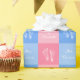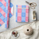 Cute pink and blue chequered birth announcement twin boy and girl baby shower wrapping paper with two sets of newborn baby footprints. Personalise by adding the names of the precious baby girl and boy twins to the custom text area.