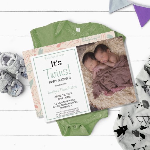 IT'S TWINS! MODERN PEACH FLORAL PHOTO BABY SHOWERDesigned by Christina Wedberg