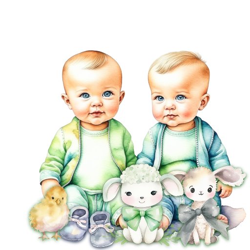 Cute blue and green themed baby shower sticker with two boy twins. Good for sealing baby shower invitations or party favour bags.