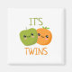 Cute Orange and Apple characters with text reading: "It's Twins".