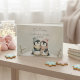 The cover features the beloved twin penguin design, accented with shimmering metallic foil, making it an elegant centerpiece for your shower. This Guest Book is an essential keepsake for any winter twins baby shower.