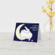 White bunny hanging off a crescent moon with the sentiment, "I've been searching for you." Intended for people searching for a biological parent or child.