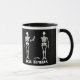 Two crazy skeletons ripping parts off of each other. One has the other's back, while the other rips off his 'humerus' bone and tells him he's humerus (You're humourous).