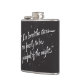 Well made flask, a little better than I had expected. Flask came in clear plastic box which gave it a nice presentation when I took it out of the zazzle packaging. Image is not printed on flask but on sticker. Don't know how this will hold up I haven't used it yet. This would make a Great gift! I plan to purchase more for friends! Cheers. I thought a little brighter than computer. Very crisp, writing wasn't