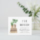 Simple boho chic new home / change of address moving announcement featuring watercolors of books and house plants and minimal modern typography. On the front, personalise with your name, the "I've Moved" text and your new address. On the reverse, personalise your announcement in more detail and include a telephone number and email if desired.