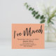 Keep your friends and family up to date with your new address using these simple, elegant announcement cards. You can insert them into your wedding-themed mailings or share them in person, as you see fit. Whether you're a newlywed or just want a unique design for letting your tribe know how to find you, this card is versatile enough for anyone. It features pretty typography graphics that read "I've Moved" on the front and "Stay in touch!" on the back, using a modern, casual, handwritten script font. Use the template fields to add all your own details to personalise this design for your own use. Feel free to change the background to any colour you wish. // 105 //
