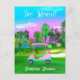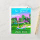 I've Moved Sunset Golf Course Pink Golf Cart Postcard