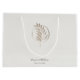 Elegant wedding gift bag featuring a delicate twig enclosed in a circle with a soft ivory and off-white colour palette. The design includes a simulated 3D letterpress effect, creating a refined and textured look. Perfect for presenting favours, welcome gifts, or thank-you tokens, this gift bag adds a sophisticated touch to your wedding celebration.