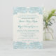 Pretty vintage floral lace inspired design in aqua over ivory wedding invitation with antique charm and a country romantic elegance.