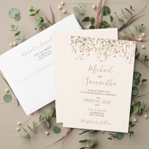 Ivory and Blush Wildflower Wedding Envelope