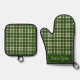 Ivory and Emerald Green Plaid Pattern Oven Mitt & Pot Holder Set