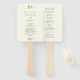 Add all your order of your wedding service to this modern elegant ivory and gold double sided wedding program hand fan template thats easy to customise.