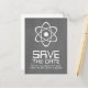 Cute and nerdy Atomic Chalkboard Save the Date Postcard featuring a simple atomic symbol in white on a chalkboard look background. This geeky and fun save the date postcard is perfect for announcing your science themed wedding! Easy to customise, simply add the details of your wedding in the spaces provided. Click "Customise It" to find more personalisation options.