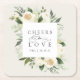 Ivory Bloom Floral Frame "Cheers to Love" Wedding Square Paper Coaster