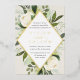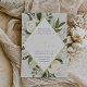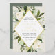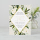 Our Ivory Bloom wedding invitation surrounds your wedding day details with a modern diamond shaped geometric frame of painted watercolor greenery, eucalyptus leaves, botanical foliage and white rose and peony flowers. Gold foil trim and accent lettering add a luxe finish to this beautiful design.