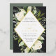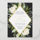 Our Ivory Bloom wedding invitation surrounds your wedding day details with a modern diamond shaped geometric frame of painted watercolor greenery, eucalyptus leaves, botanical foliage and white rose and peony flowers. Gold foil trim and accent lettering add a luxe finish to this beautiful design.