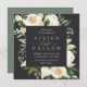 Our Ivory Bloom wedding invitation surrounds your wedding day details with a square frame of painted watercolor greenery, eucalyptus leaves, botanical foliage and white rose and peony flowers.