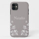 Sweet and dainty Butterfly Floral Case-Mate Barely There iPhone 4 Case with a muted dusty grey background and ivory butterflies and floral vine embellishments. This elegant floral iPhone case will protect your phone with girly flair! Easy to customise, simply add the personalised text of your choosing in the text fields provided. Click on the "Customise It" button to find additional personalisation options.
