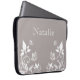 Sweet and dainty Butterfly Floral Electronics Sleeve with a muted dusty grey background and ivory butterflies and floral vine embellishments. This elegant floral laptop sleeve will keep your gadget protected with a dash of girly flair! Easy to customise, simply add the personalised text of your choosing in the text fields provided. Click on the "Customise It" button to find additional personalisation options.