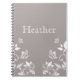 Sweet and dainty Butterfly Floral Notebook with a muted dusty grey background and ivory butterflies and floral vine embellishments. This elegant floral notebook is full of girly flair and is perfect for jotting down notes or whatever else your imagination holds! Easy to customise, simply add the personalised text of your choosing in the text fields provided. Click on the "Customise It" button to find additional personalisation options.