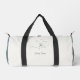Flow through your travels with this ivory and coastal blue duffle bag from the Floral Zen Line Art Collection. This chic design features a botanical sketch and your name on the front, while the back displays your custom name. Add your monogram to the side pocket for a high-end finish. A thoughtful wellness gift or unique bridesmaid proposal idea. ©Susanne Sachers - Sunny Wanderlust 🌞✈️