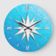 Art Deco 12-point compass rose, with the look of white ivory, against a turquoise blue glass-textured background - digital art